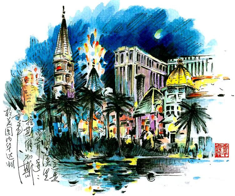 Although Nevada is a desert state unsuitable for human habitation, a modern metropolitan city stands in it: Las Vegas. Las Vegas is not only an American miracle, but also a miracle of the world. Painting the city at night, I felt its stunning beauty when the city lights up.